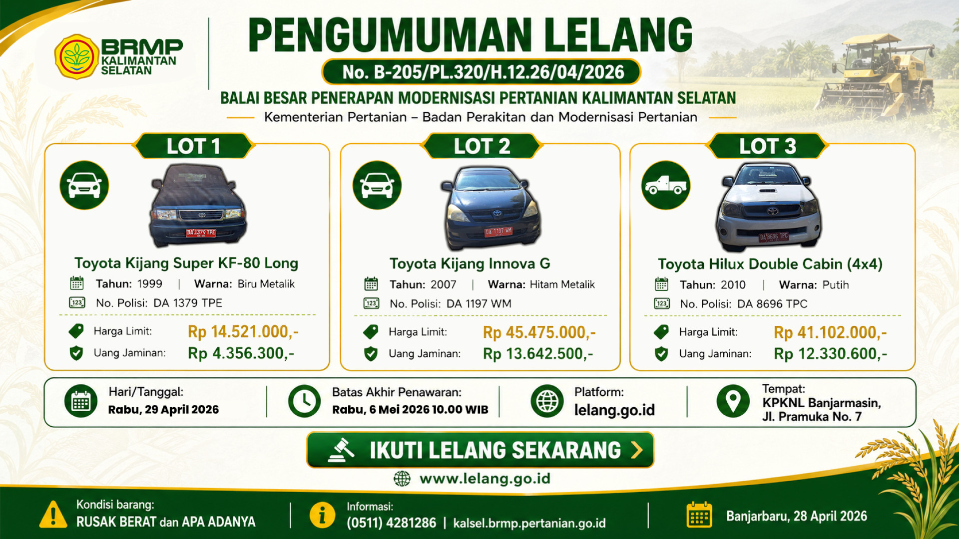 Badan Perakitan dan Modernisasi Pertanian (BRMP) mengusung modernisasi pertanian berkelanjutan dengan inovasi teknologi yang meningkatkan produktivitas, efisiensi dan daya saing sekaligus kelestarian lingkungan. Melalui penelitian, perakitan teknologi, mekanisasi dan digitalisasi, BRMP membangun sistem pertanian yang cerdas, ramah lingkungan dan tangguh menghadapi tantangan masa depan.