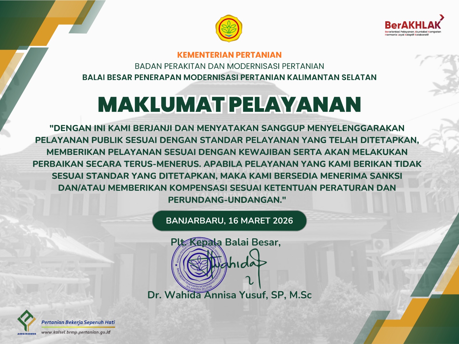 Sebagai badan publik, BRMP Kalimantan Selatan berkomitmen menyelenggarakan pelayanan informasi publik yang sesuai standar dan sesuai peraturan perundang-undangan.